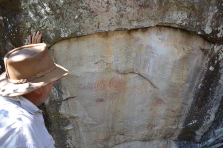 This morning we went for a walk with Dave to some caves that he had discovered (he is obviously a bit of an amateur archaeologist; he goes in search of aborigine sites in Australia). It was fascinating visiting “Dave’s Caves” – there are rock paintings and implements which apparently date back some 65 000 years.