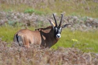 The camp site itself has 3 large covered areas, complete with table and fireplace. We have nice hot showers, flushing toilets and a kitchen area with a fire stove. All this set on a large grassed field surrounded by forest on 3 sides and opening up onto the moors, teaming with antelope. As we sat drinking coffee, the mist lifted and on the hills in front of us were roan, eland, bush buck, reedbuck, zebra and jackal.