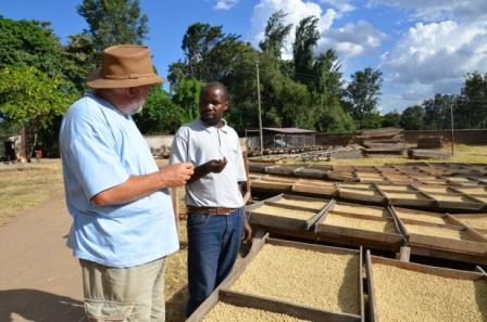 Eventually, we arrived at the offices and the assistant manager took us on a guided tour of the plantation bushes and showed us the harvesting process. It is a lot more scientific than one would think; I had pictured a couple of beans being picked, dried out and ‘hey presto’ we have Nescafe, or if they have a crappy harvest, we get Ricoffy. Not so, there are different bushes, the main one here being Arabica but they are experimenting with hybrids. Picking has to be done at exactly the right time, when the berries turn a blood red, this is done by the local ladies and they are paid per bucket full. Then there is a whole process of depulping, cleaning and drying out. The roasting is done at their factory in Dar or the green coffee beans are transported overseas. Gray loves his coffee and now knows what goes into getting his morning cup.
