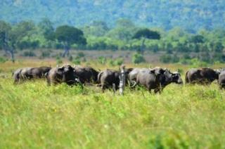 After an early lunch we headed into the Mikumi National Park. The park is in the northern section of the vast Selous ecosystem and is easily accessible from the main road. The vast, flat grassland savannah areas of this section of the park are enclosed in a horse shoe of mountain ranges. The grasslands are host to huge herds of game. This, at last, is what I pictured the African bush to look like. The herds of impala and buffalo run well into the hundreds. There are herds of zebra, wildebeest, eland, giraffe and elephant. As we travelled further into the bush, the aim to visit a dam with an unpronounceable name, we encountered this tall grass that literally enveloped the car. The only way we could see anything would be if it dropped out of the sky in front of the car. The dam after all, proved a little disappointing and as the alternate road was closed we had to fight our way back through the fountains of grass.