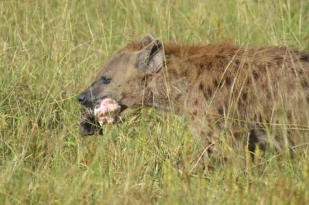 Hyena with zebra leg