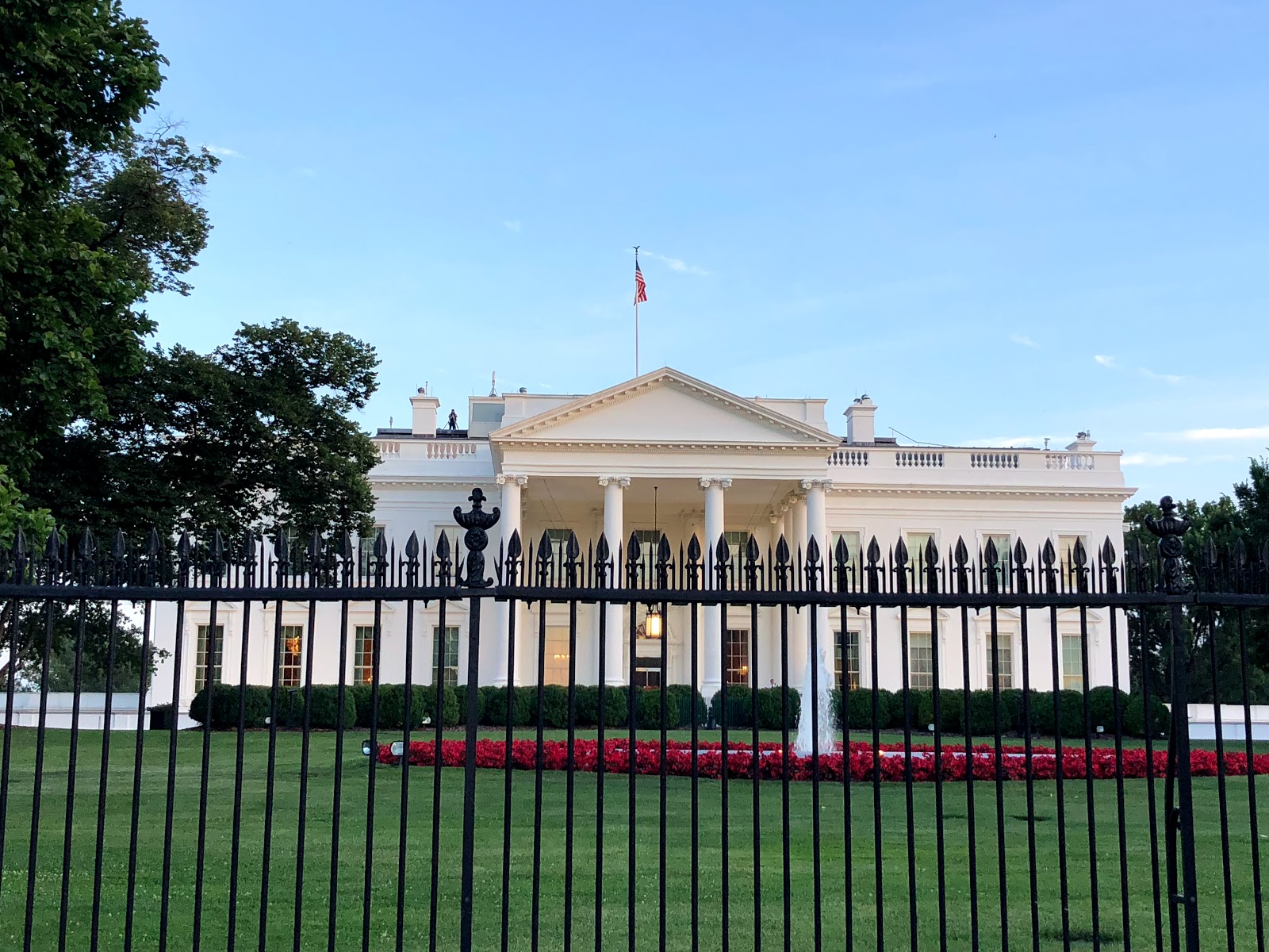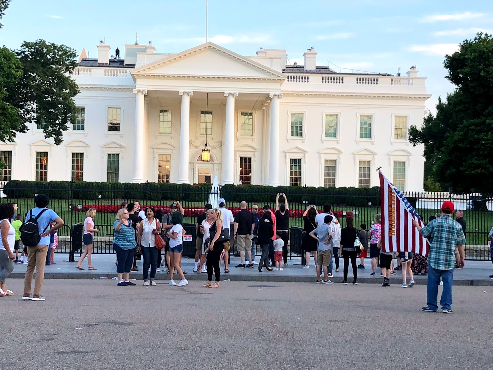 On our last night in DC we had dinner in a Mexican restaurant and on our stroll home we stopped for ice creams. We ordered small tubs and these contained 4 scoops. Everything is BIG here but my choc chip/cookie dough/peanut butter cup Ice cream was delicious. We walked passed the South side of the White House as the sun was setting.