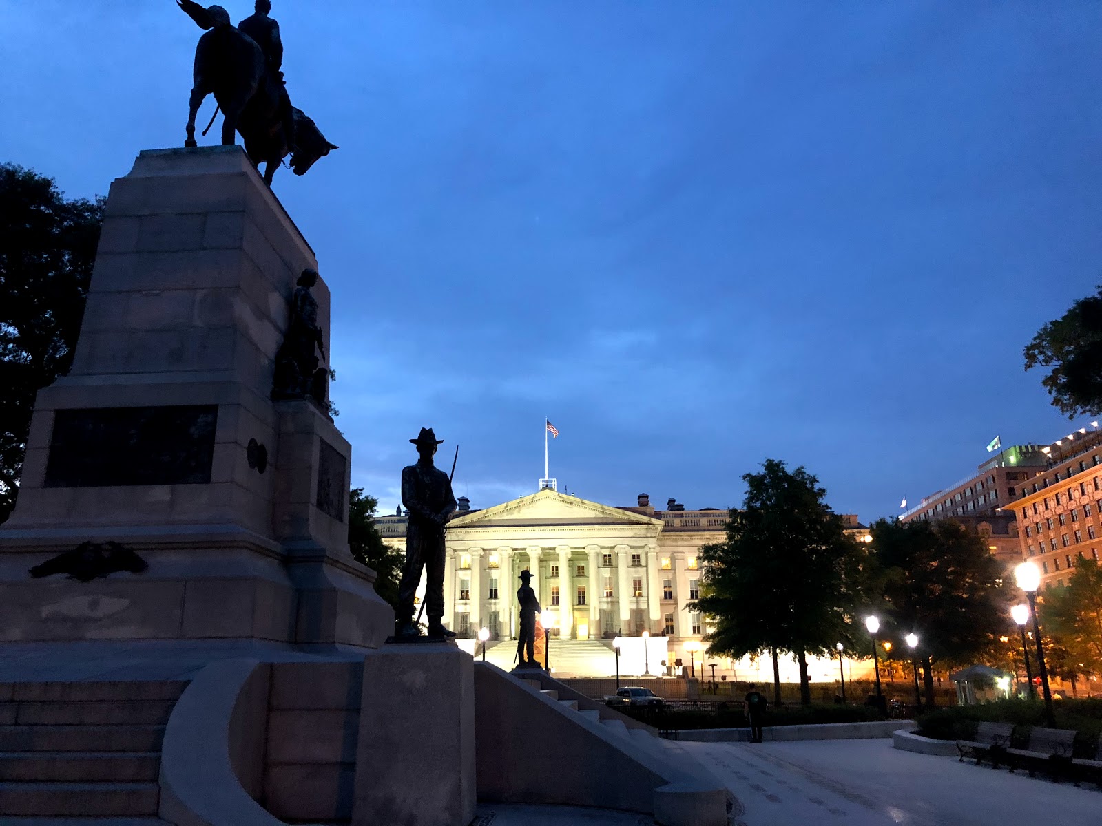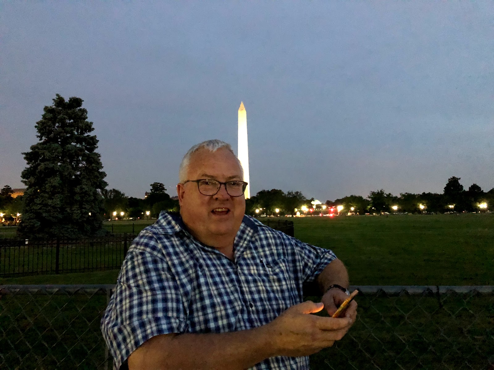 After dinner we strolled back via the White House, getting a great evening view of it and Washington Monument.