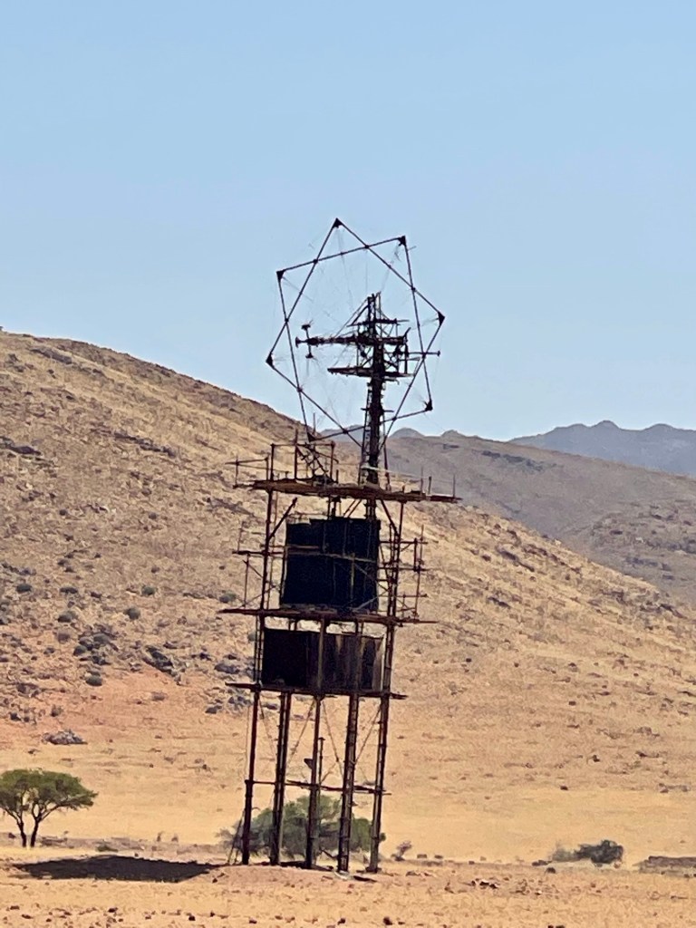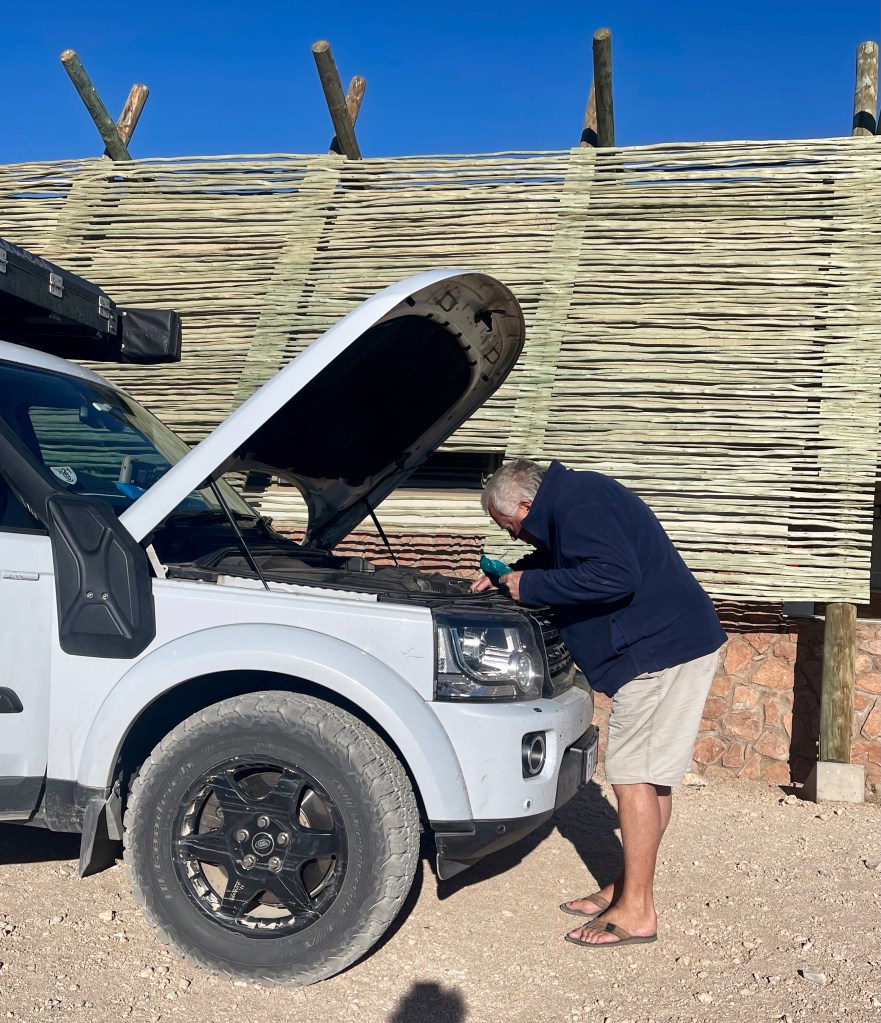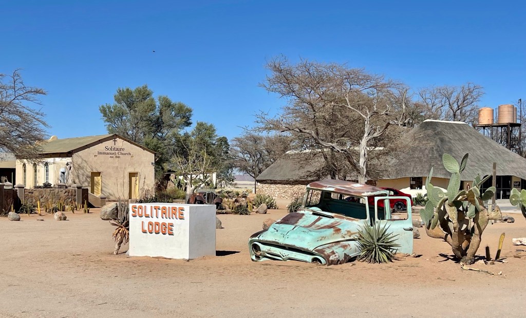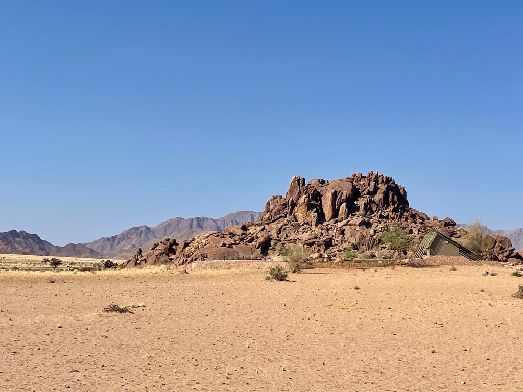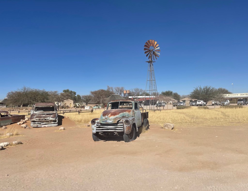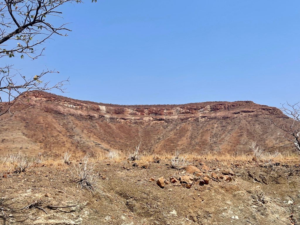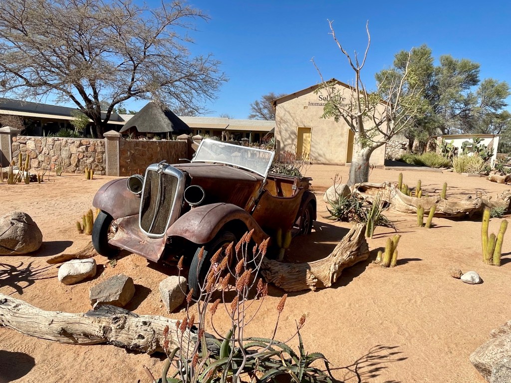 We pass the Himba Holy Mountain from the other side before retracing our steps to Rooidrom. It seem hard to believe that this remote, tranquil area was a base for the border war. A stark reminder is the wreck of a car that had been blown up by a land mine.
