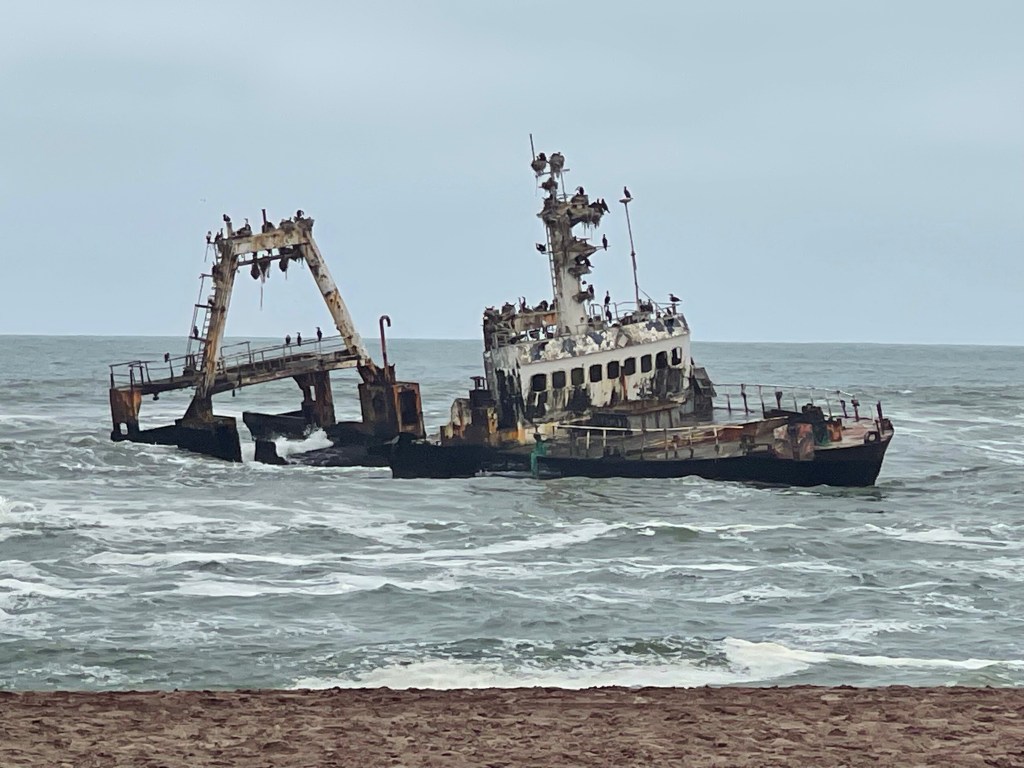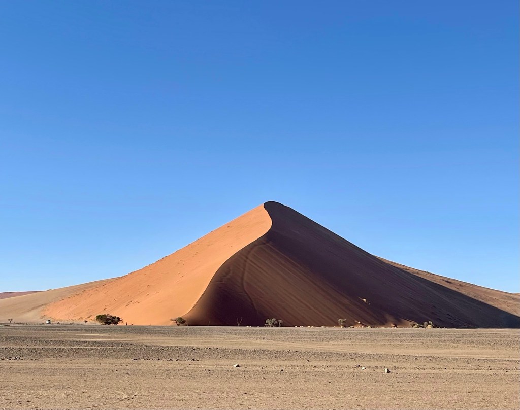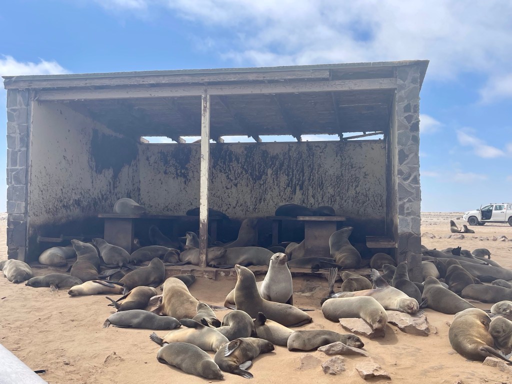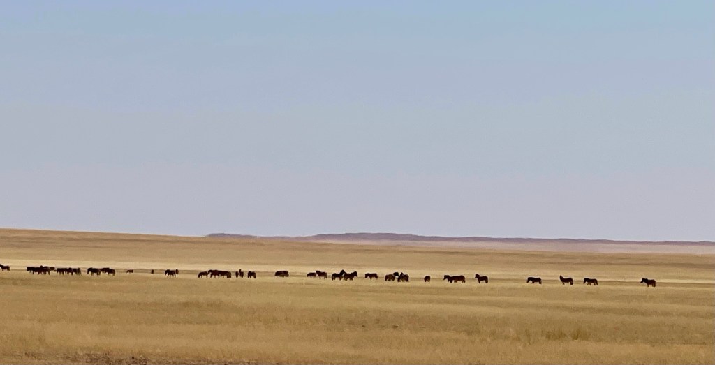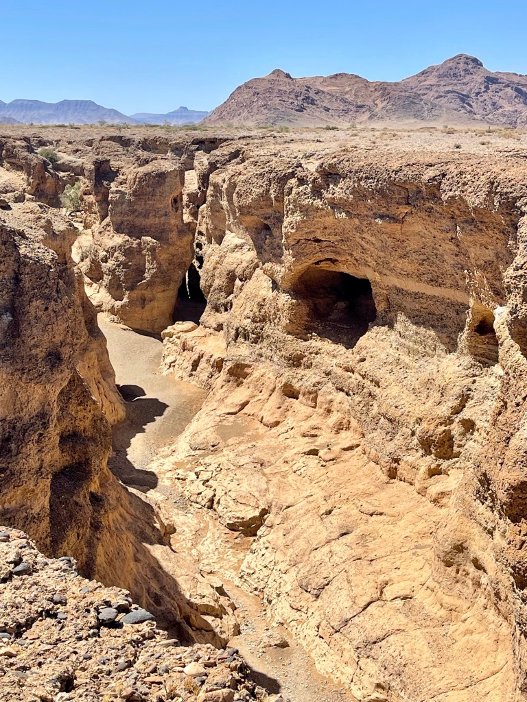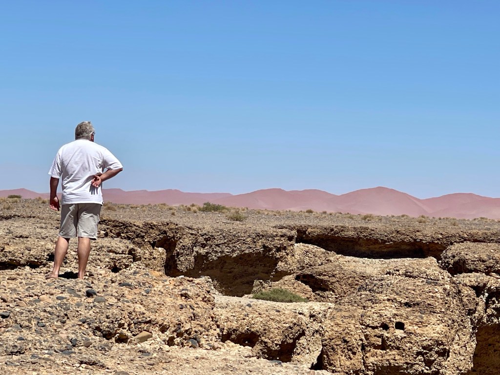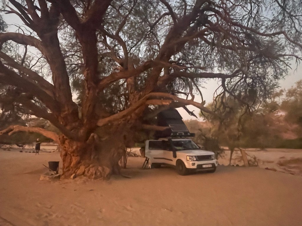 We pass the Himba Holy Mountain from the other side before retracing our steps to Rooidrom. It seem hard to believe that this remote, tranquil area was a base for the border war. A stark reminder is the wreck of a car that had been blown up by a land mine.