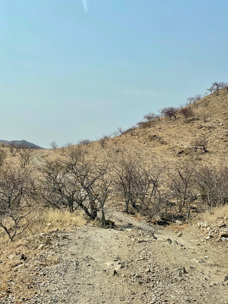 We want to travel east along the most Northern part of Namibia. It was however not possible as due to the mountainous terrain there is no pass through. So today we headed south to the town of Opuwa.