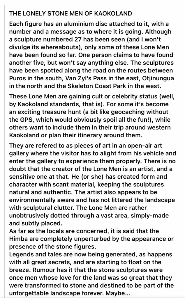 We fond another two Stone Men today. One labelled ‘Making time to rest’ and the other ‘Hoping to meet’.
