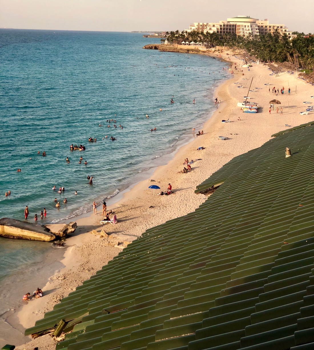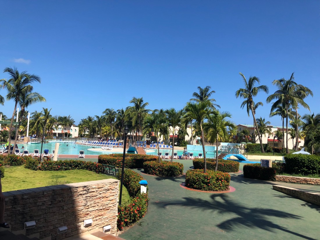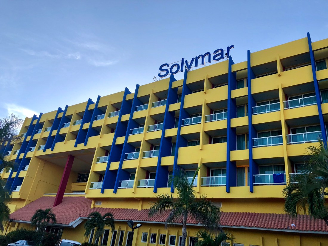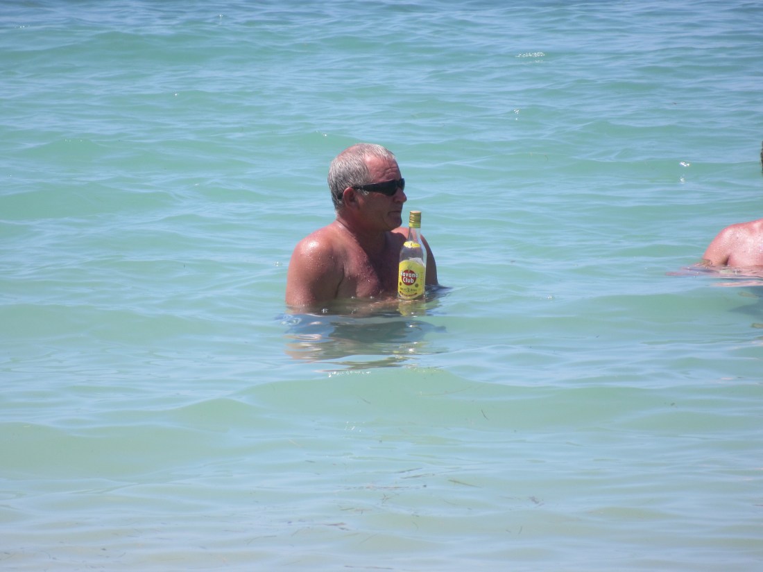 Varaderos is a resort town and we had been booked into a ‘luxury’ hotel for our last night in Cuba. The ‘luxury’ Solymar Hotel, gave cause for concern as we drove up to the entrance. It was bright yellow and blue, with a smattering of maroon to compliment. This was Cuca Club Med. After negotiating the busy lobby area adorned with cascading fountains of creepers, we discovered we could only book in at 4pm. Fortunately we were able to store our luggage. We put on cossies and headed outside. We avoided the busy pool area and walked down to the beach.