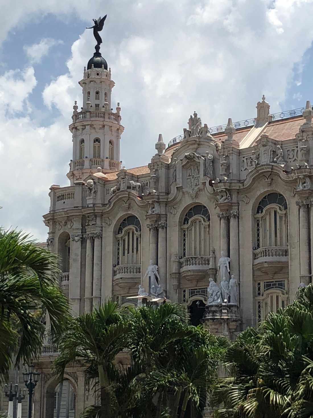 oAfter a great lunch at Dona Eutimia Restaurant, with two street musicians as entertainment, we headed off to Central Park. Most of the buildings have been restored and cleaned but those that have not are a stark contrast and one has to be immensely greatful to UNESCO for ensuring the survival of historical areas, not only here but all around the world. The most beautiful building I think I have ever seen was the Alicia Alonso Theatre in this square. It hosts shows and ballet companies from around the world. Next to this building they are in the process of cleaning the dome to the Capital Hill building, a replica of the one in Washington, except for one feature, this building is 5cm taller (don’t tell Trump).