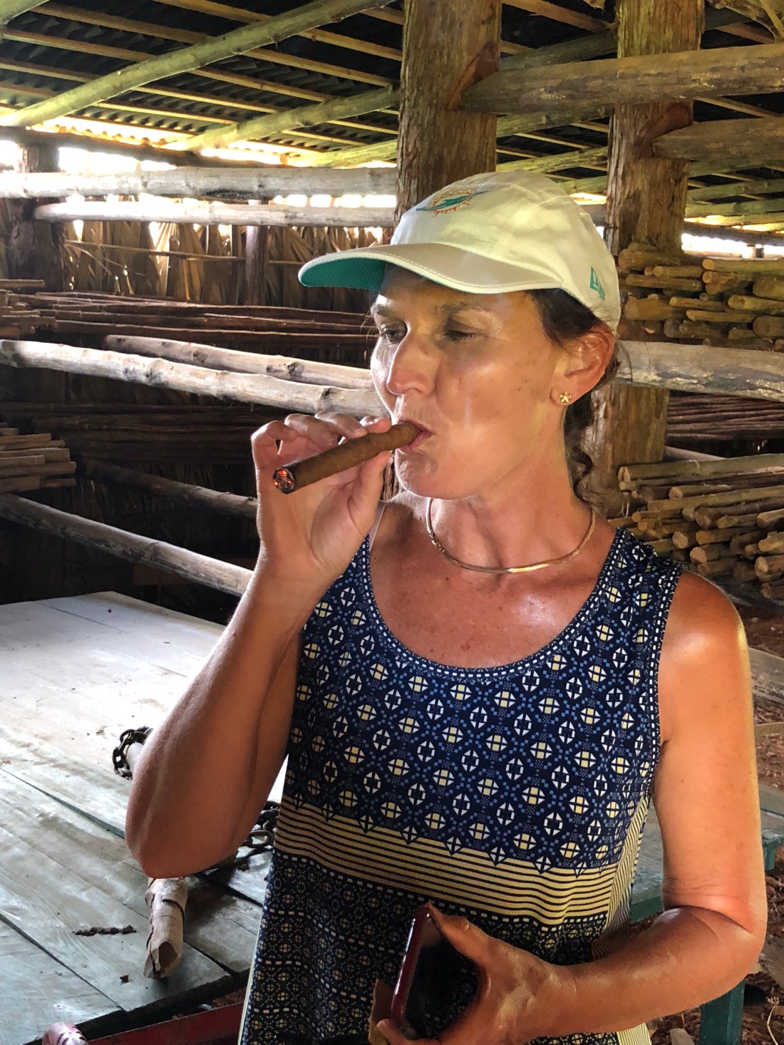 We then headed down into the valley to Benito Camejo Nodarse’s farm. Him and his family own one of the private farms in Cuba. It is less than 25 acres and on it they farm mainly tobacco but also coffee, sugar and fruit. 90% of their tobacco crop is taken by the government, they however have a thriving sideline business in tourism. They showed us how to make Cuban cigars, gave us espressos and rum to drink and naturally we bought their cigars and coffee beans.