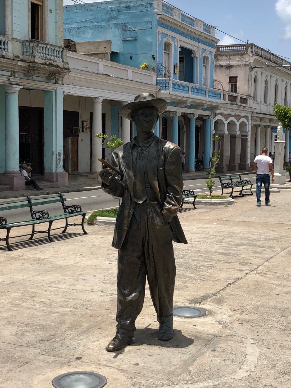This is a harbor town predominantly for oil imports, which Cuba then sells onto other Caribbean Islands for a handsome profit – Communism at its best. We then wandered through the town, here was the first evidence of shops ‘as we know them’. It is also an arty area and they are proud of their statue of Benny Moreno in the main road. After an extremely hot walk along the waterfront back to our taxi we had a pleasant 2 hour scenic drive into Trinidad, with views of the Sierra del Escambray, Cuba’s second largest mountain range, on the left the Caribbean Sea on the right.