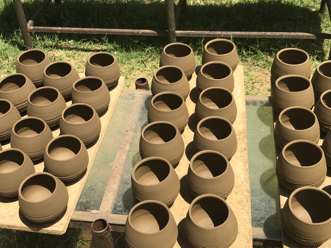 Revived Revived by a round of conchancharas at around 10:30, we took a walk to the pottery House, which has been in the family for 7 generations and were treated to a display of the potters at work. From there it was a grueling trek in the midday heat to a waiting taxi. We passed a church, which was in ruins and no attempt was being made to restore it, as apparently this was Gods will, however the local children were using it as a playground.
