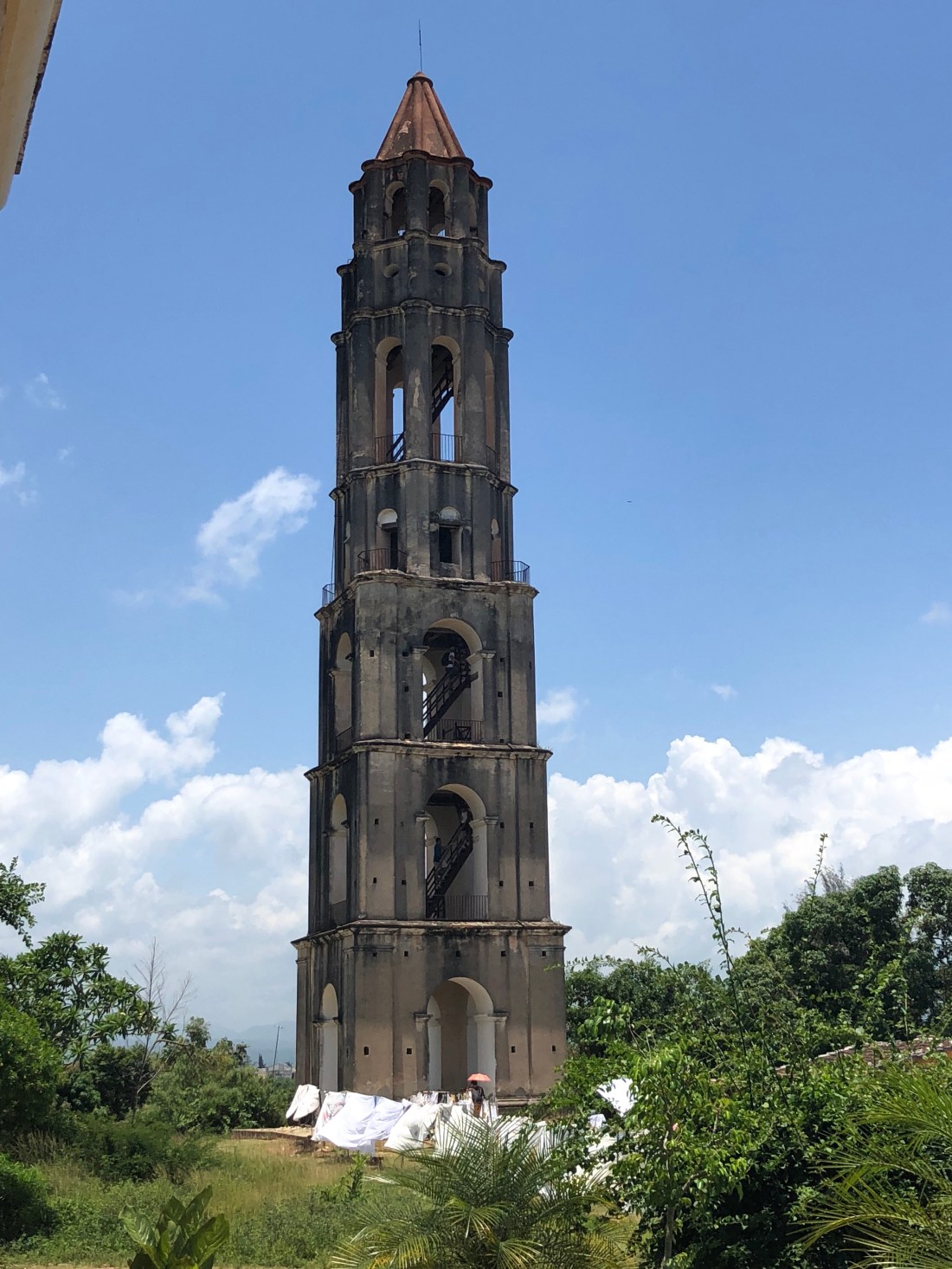 Our drive took us through farmlands to visit the historic-natural landscape, Valle de los Ingenios (Valley of lost sugar mills due to the decline of sugar production in the area). We climbed up some rickety wooden stairs to the top of another ancient tower in the area, it was around 120m high. Well worth the climb once we saw the view of the area.