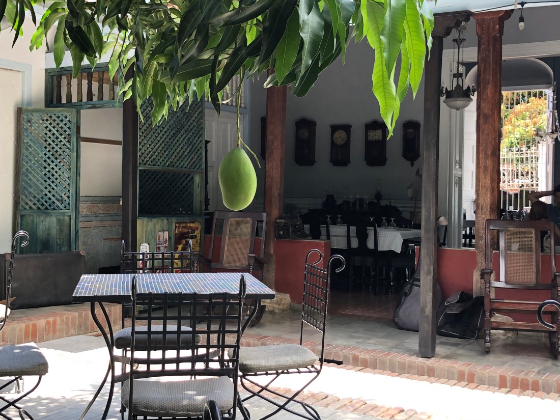 Trinidad is a step back in history, to the 18 and 19 Centuries, reminiscent of South America. Small one and occasionally two story, colourfully painted houses face directly onto the narrow cobbled streets. There are no glass windows, only bars called mamparas (giving us South Africans a giggle), in bygone days they were made of turned wood and a lot are still in evidence but the rest have metal bars. This is not to keep the mamparas out but to let the air flow through the houses in this, at times unbearably hot climate. Looking in, the houses are neat and clean, filled with antique furniture and rocking chairs are common place.