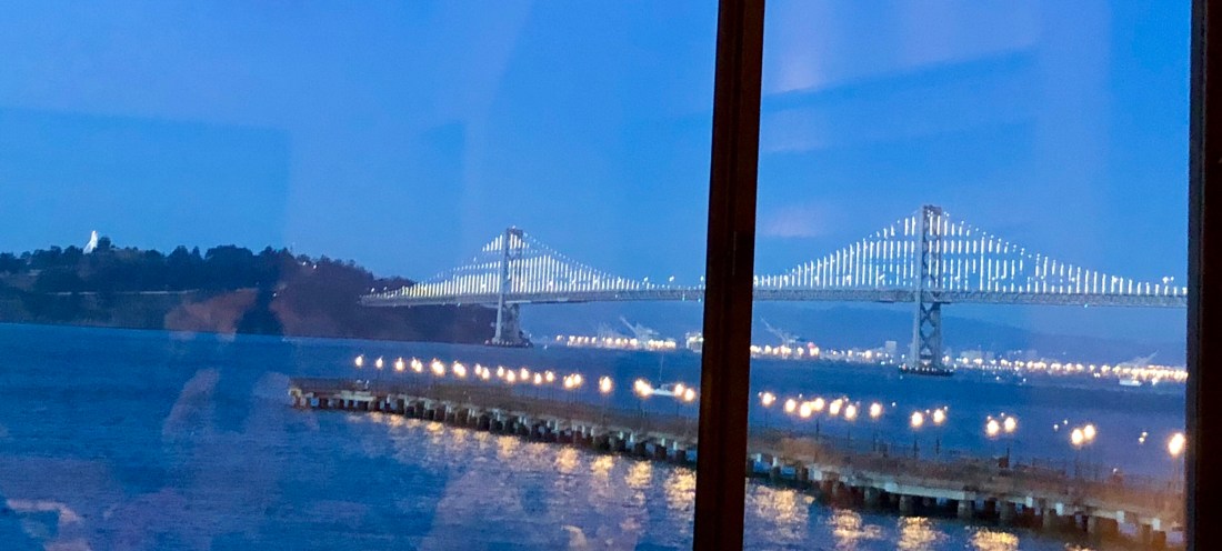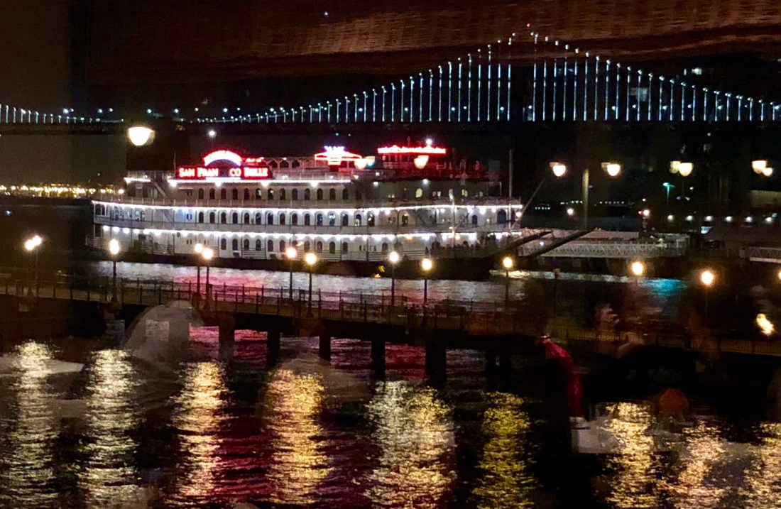 We celebrated Independence Day at the Waterfront Restaurant, overlooking the harbor, with views of the beautifully lit up Bay Bridge and we saw some of the fireworks over the bay.