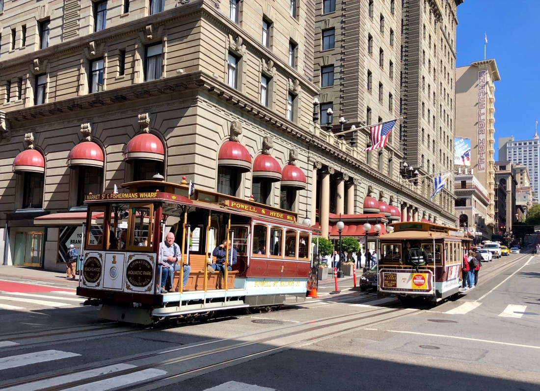 This morning we caught one of the old trams that hauled us up to the top of steep Nob Hill and over and down the other side. Gray and I held on for dear life on the descent.